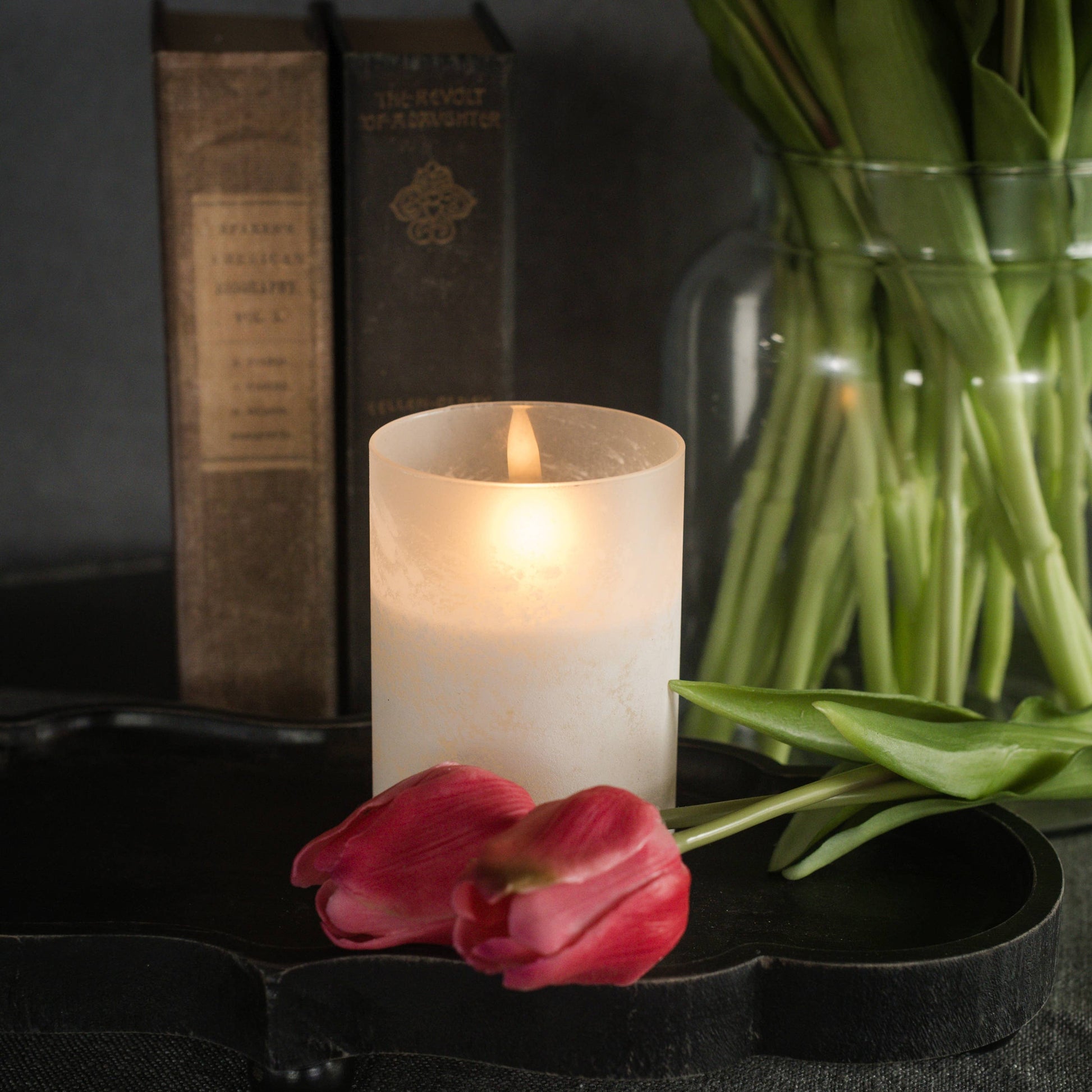4" WHITE FROSTED GLASS 3D FLAME CANDLE