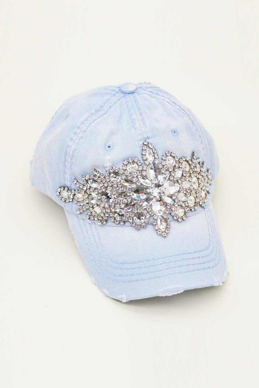Abstract Bejeweled Bling Glitz Cap, Adjustable: Sky Blue + Silver/Clear