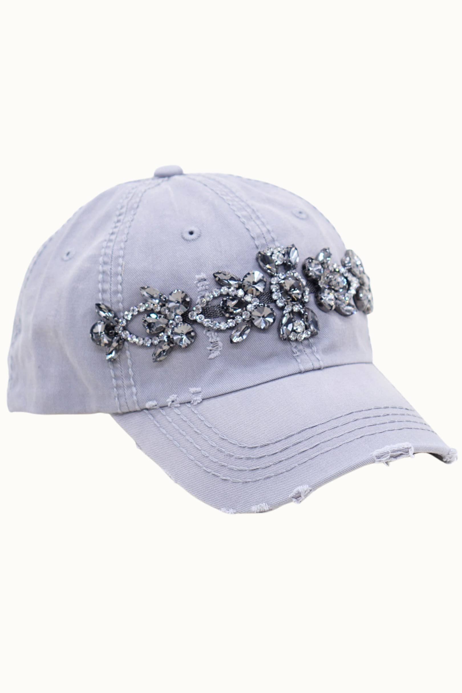 Bejeweled Bling Glitz Distressed Cap, Adjustable