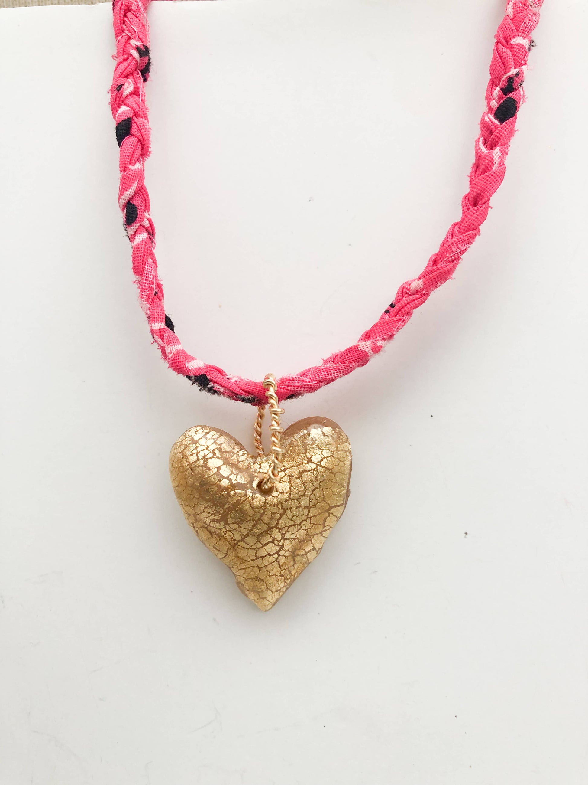 Hot Pink Bandana with Gold Leafed Heart Necklace