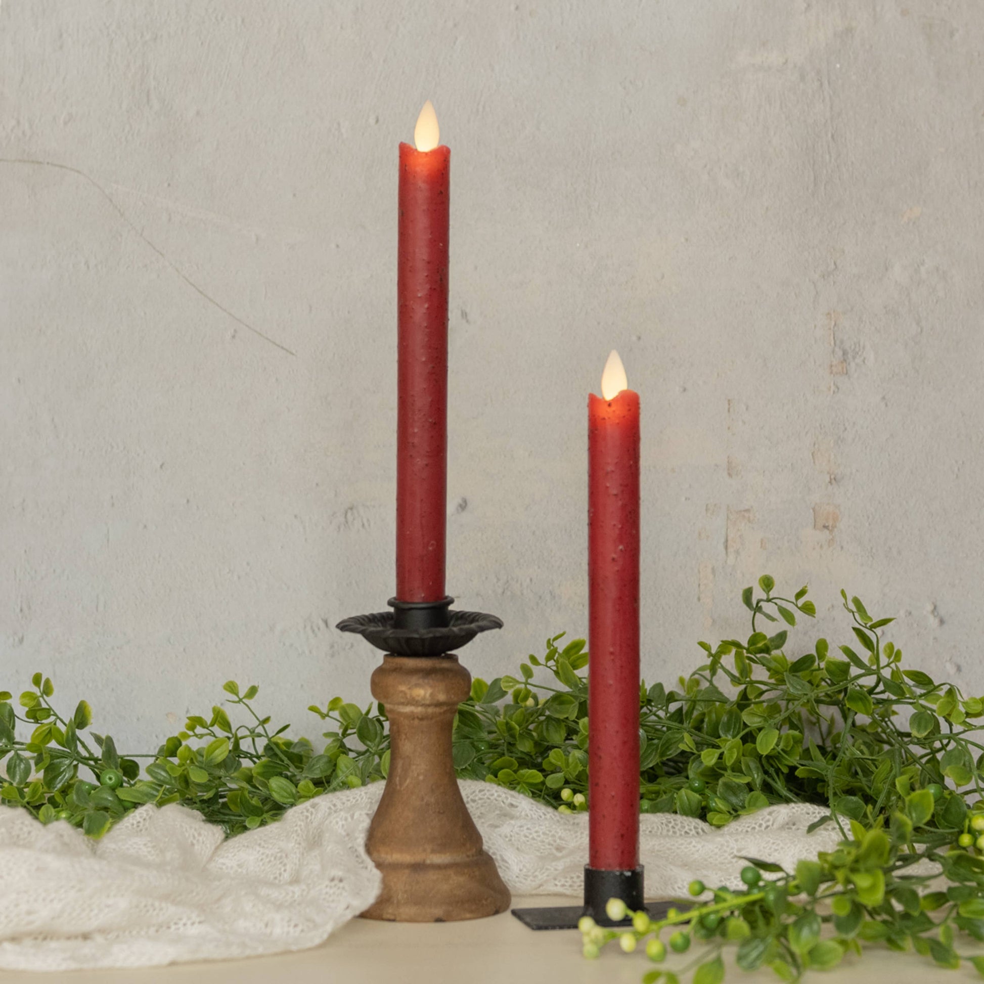 SET/ 2 - 9.5" MOVING FLAME RED TAPER CANDLE
